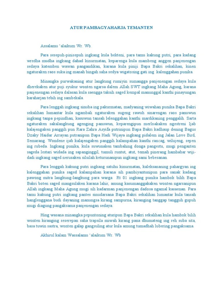 Subadri wignyo raharjo di jalin rt 12 rw 06, karangdowo, klaten, jawa tengah atur panampi pasrah lamaran pengantin . Dhumateng (sesebutanipun kajumbuhaken kawontenan miturut andhap inggiling pangkat kalenggahan ingkang sami . Semoga bisa untuk belajar cara pidato atur panampi pasrah lamaran adat jawa liputan video ini dalam rangka pernikahan amin rohmadi & yeni . Contoh atur panampi pasrah calon penganten kakung terbaik. Berikut ini contoh atau tuladha atur wangsulan yang saya sampaikan.